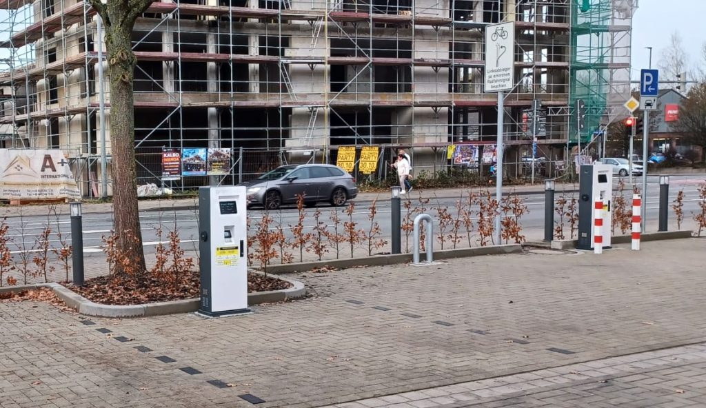 Öffentliche Ladestationen an einem Pflegeheim in Celle. Die Ladeinfrastruktur steht Besuchern, Mitarbeitern und der Öffentlichkeit zur Verfügung.
